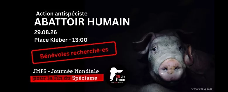 13:00 Mise en scène grandiose en préparation ! 📣🎭 Un abattoir humain à grande échelle débarque à Strasbourg !📆 Quand ? Samedi 29 août📍 Où : Place Kléber – Strasbourg* Bénévoles recherché-es ! *Pour